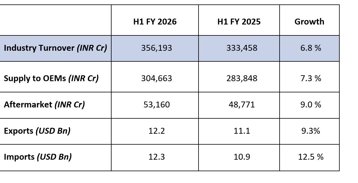 Auto Component Industry Grows 6.8% in H1 FY26: ACMA
