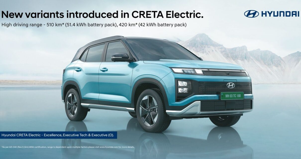Hyundai Motor India Limited (HMIL) has expanded its CRETA Electric portfolio with three new variants – the CRETA Electric Excellence, the CRETA Electric Executive Tech with a 42 kWh battery pack, and the CRETA Electric Executive (O) with a larger 51.4 kWh battery pack. The new 42 kWh and 51.4 kWh battery packs now deliver […]